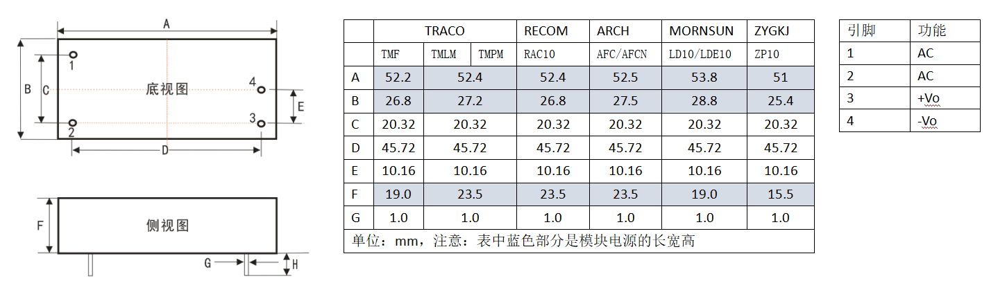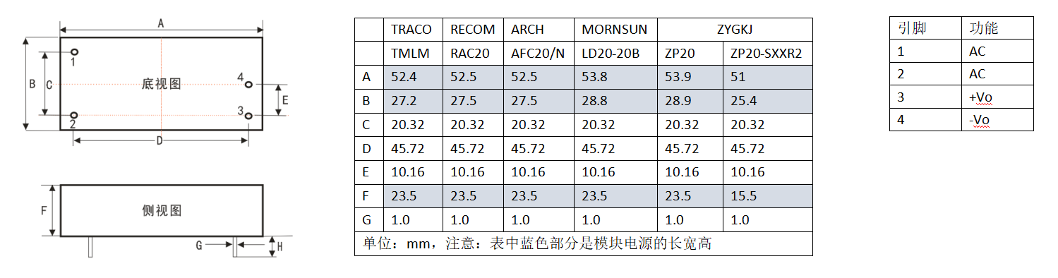 ZYG_中逸光與一些模塊電源知名廠商替代表